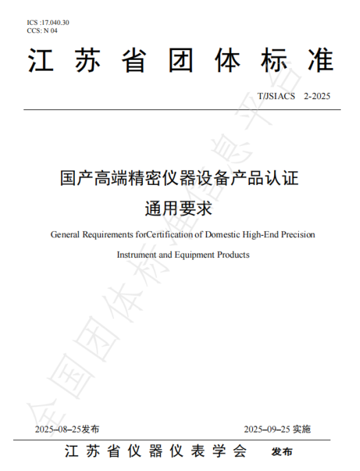 近日,江蘇省儀器儀表學(xué)會正式批準(zhǔn)發(fā)布團體標(biāo)準(zhǔn)《國產(chǎn)高端精密儀器設(shè)備產(chǎn)品認證通用要求》(標(biāo)準(zhǔn)編號:T/JSIACS 2 - 2025)。該標(biāo)準(zhǔn)嚴格依據(jù)《江蘇省儀器儀表學(xué)會標(biāo)準(zhǔn)管理辦法(試行)》制定,圍繞國產(chǎn)高端精密儀器設(shè)備產(chǎn)品認證,在基本要求、國產(chǎn)化要求、品質(zhì)屬性等關(guān)鍵維度作出明確規(guī)范,適用于國產(chǎn)高端精密儀器設(shè)備產(chǎn)品的通用認證場景。